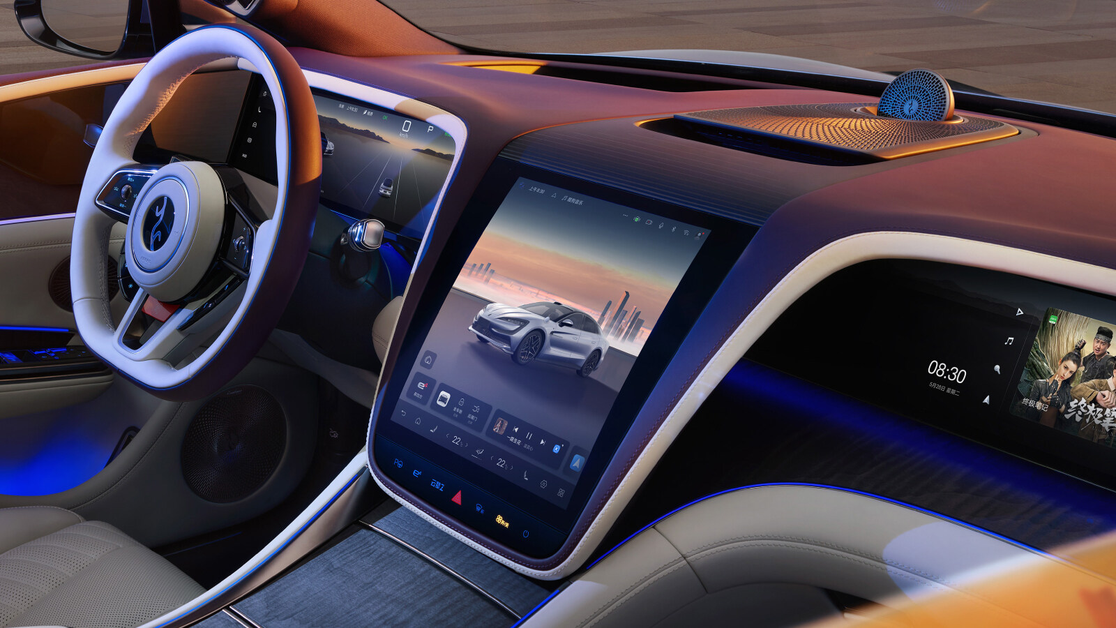 Available in four-seat and five-seat interior layouts, the four-seat flagship version features rear independent seats and dual 12.8-inch rear screens.